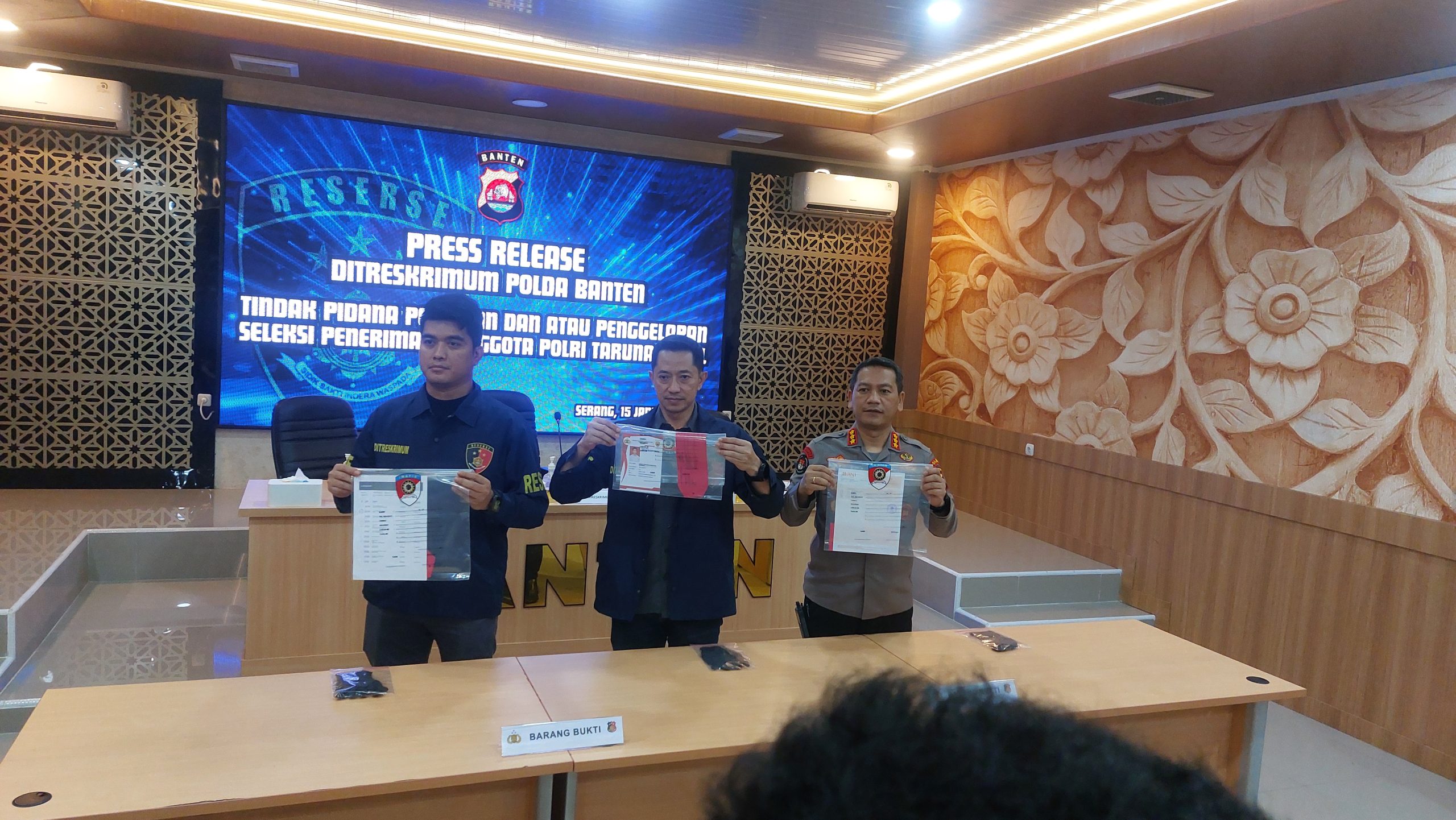 Penyidik menyita rekening koran bank milik korban serta kartu peserta seleksi Taruna Akpol. Dari pemeriksaan, tersangka tercatat menerima uang sedikitnya Rp970 juta.