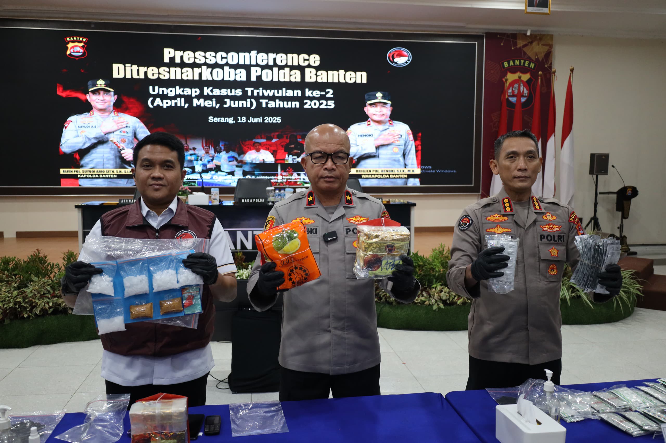 SERANG – Ditresnarkoba Polda Banten melaksanakan press Conference Ungkap Kasus Tindak Pidana Narkoba TW II 2025 selama April – Juni 2025 dalam rangka sambut HUT Bhayangkara ke 79.