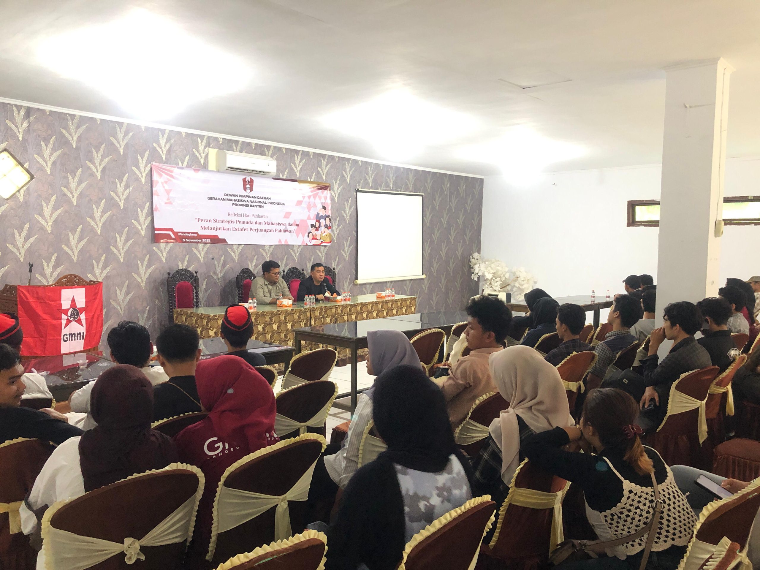 PANDEGLANG – Dalam rangka memperingati Hari Pahlawan 10 November, Dewan Pimpinan Daerah (DPD) Gerakan Mahasiswa Nasional Indonesia (GMNI) Provinsi Banten menggelar Diskusi Refleksi Hari Pahlawan dengan tema “Peran Strategis Pemuda dan Mahasiswa dalam Melanjutkan Estafet Perjuangan Pahlawan.”