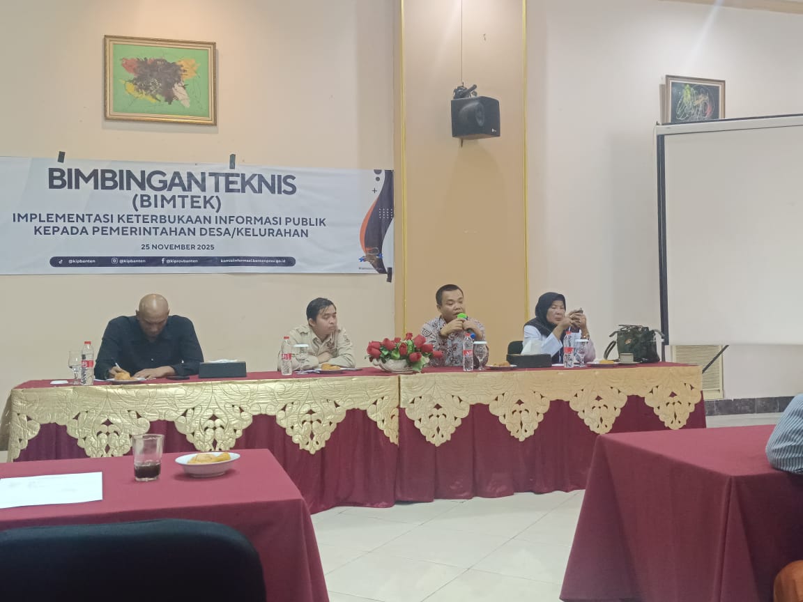 SERANG – Komisi Informasi (KI) Provinsi Banten bersama DPRD Banten memperluas edukasi keterbukaan informasi publik melalui gelaran bimbingan teknis (Bimtek) di Kota Serang, Selasa, 25 November 2025. Kegiatan yang berlangsung di Hotel Dwiza itu diikuti puluhan warga dari Kecamatan Cipocok Jaya.