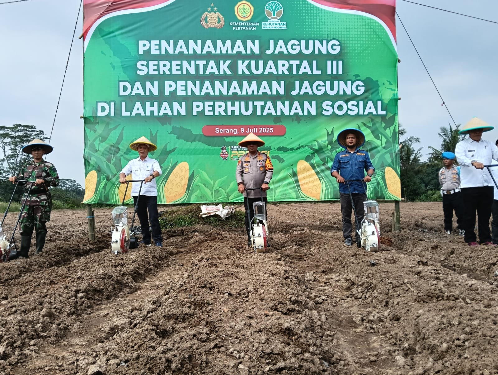 BANTEN – Kepolisian Resor (Polres) Serang dan Polsek jajaran melaksanakan penanaman jagung serentak kuartal III program Ketahanan Pangan (Ketapang) Presiden RI Prabowo Subianto, Rabu (9/7/2025).